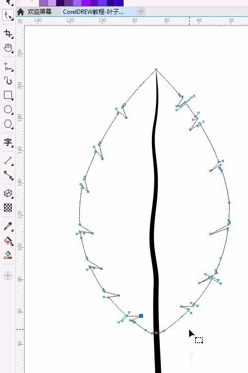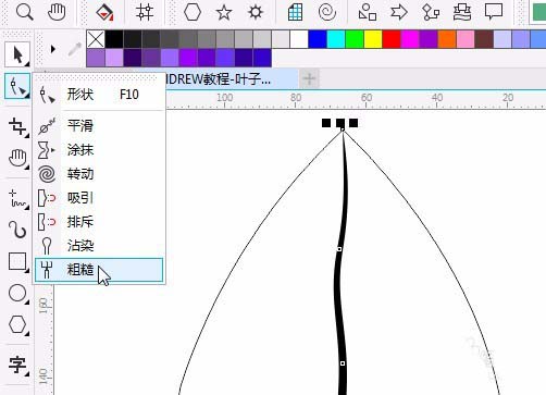 5、選擇【粗糙】工具繪制葉子的邊邊。選擇形狀工具,調整如圖形狀。