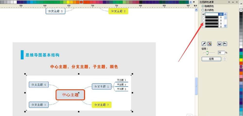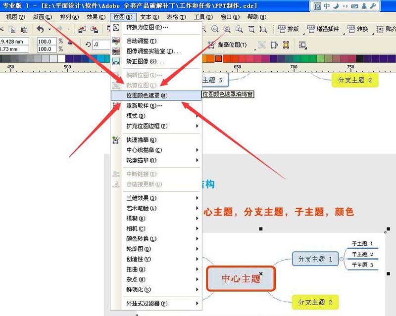 3、首先點擊CorelDraw最上面的選項——“位圖”,然后:“位圖顏色遮罩”