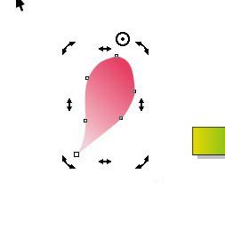 3、用貝塞爾工具,繪制一個花瓣。填充旋轉60度,按F11填充線性漸變;顏色值由①#F4D1D7②#E73F64。去除輪廓線。