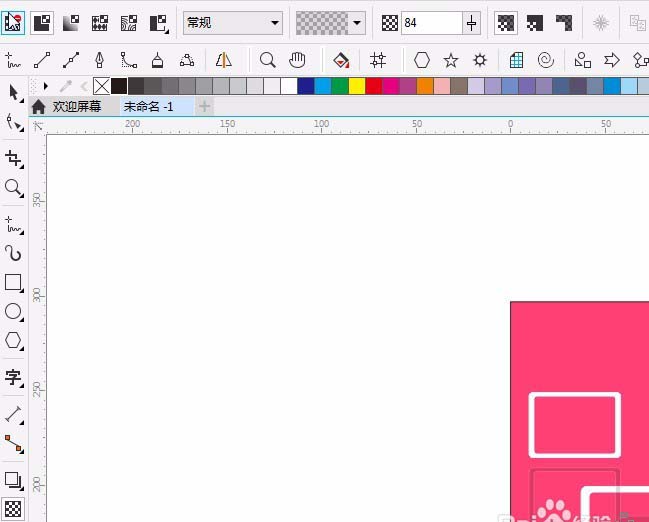 3、用同樣的方法繪制黑色矩形。如圖放置,并添加透明度效果。透明度屬性為均勻透明度,透明度為84如圖。