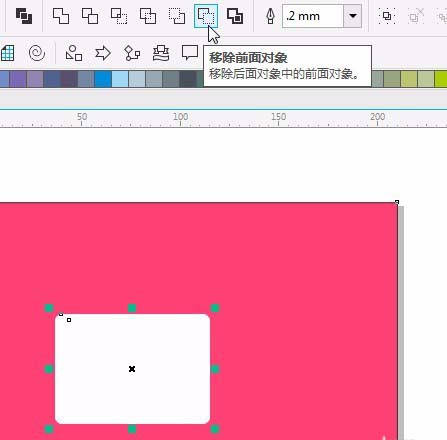 2、用矩形工具繪制圓角矩形圓角大小為3mm 填充白色,去掉輪廓線。按空格鍵,調到選擇工具。 按住shift鍵。左鍵拖動鍵點擊復制一個。同時選擇兩個圖形。選擇屬性欄的移除前面對象。如圖。復制多個。并縮小大小。如圖。全選。ctrl+g群組。