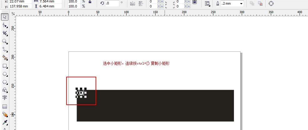 4、使用“挑選”工具在空白外點一下,把如圖紅框中數字改為0,選中小矩形,連續按20次ctrl+d,如圖