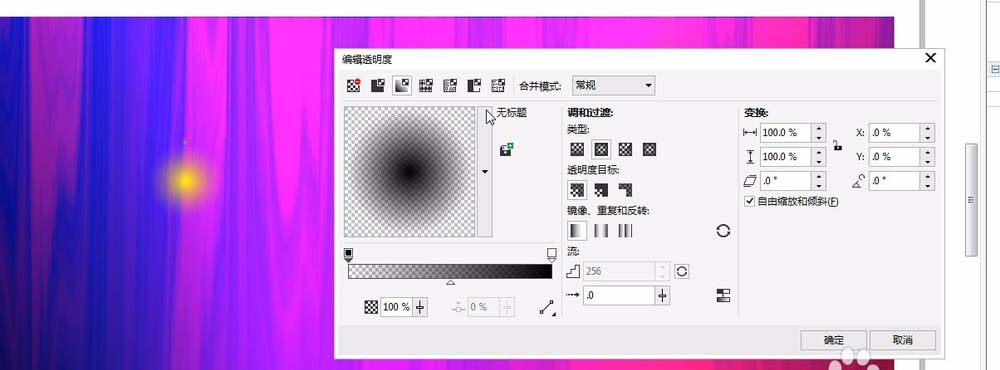 4、給窗簾添加透明度。選擇透明度工具在屬性欄改模式為添加或add,漸變模式如圖。然后框選全部,群組。
