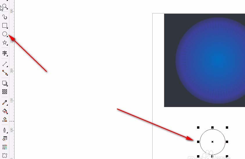 6、按F7選擇橢圓形工具,按住Ctrl鍵,繪制一個正圓。按F11,均勻填充。右鍵單擊取消輪廓。