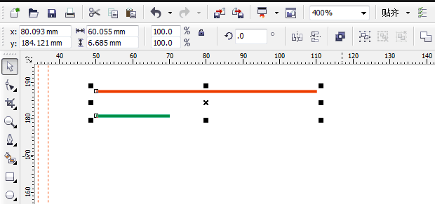 1、選中直線,查看屬性欄上線段的尺寸。我這里線段尺寸是60mm。
