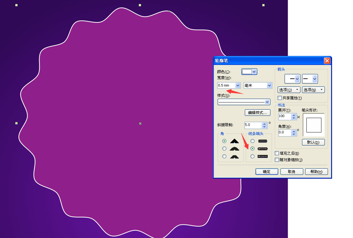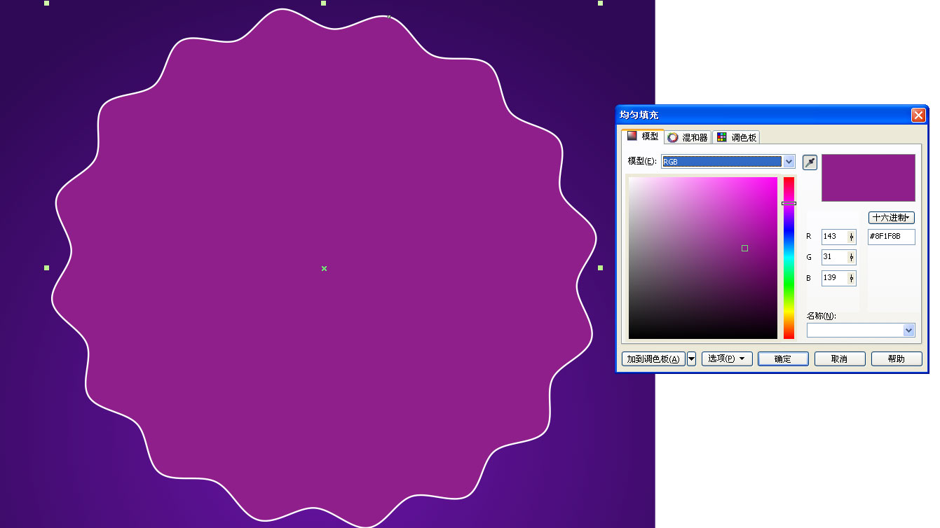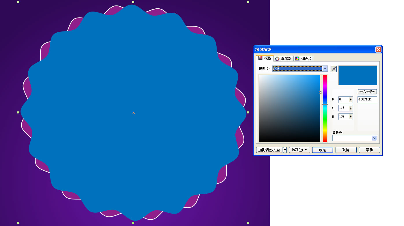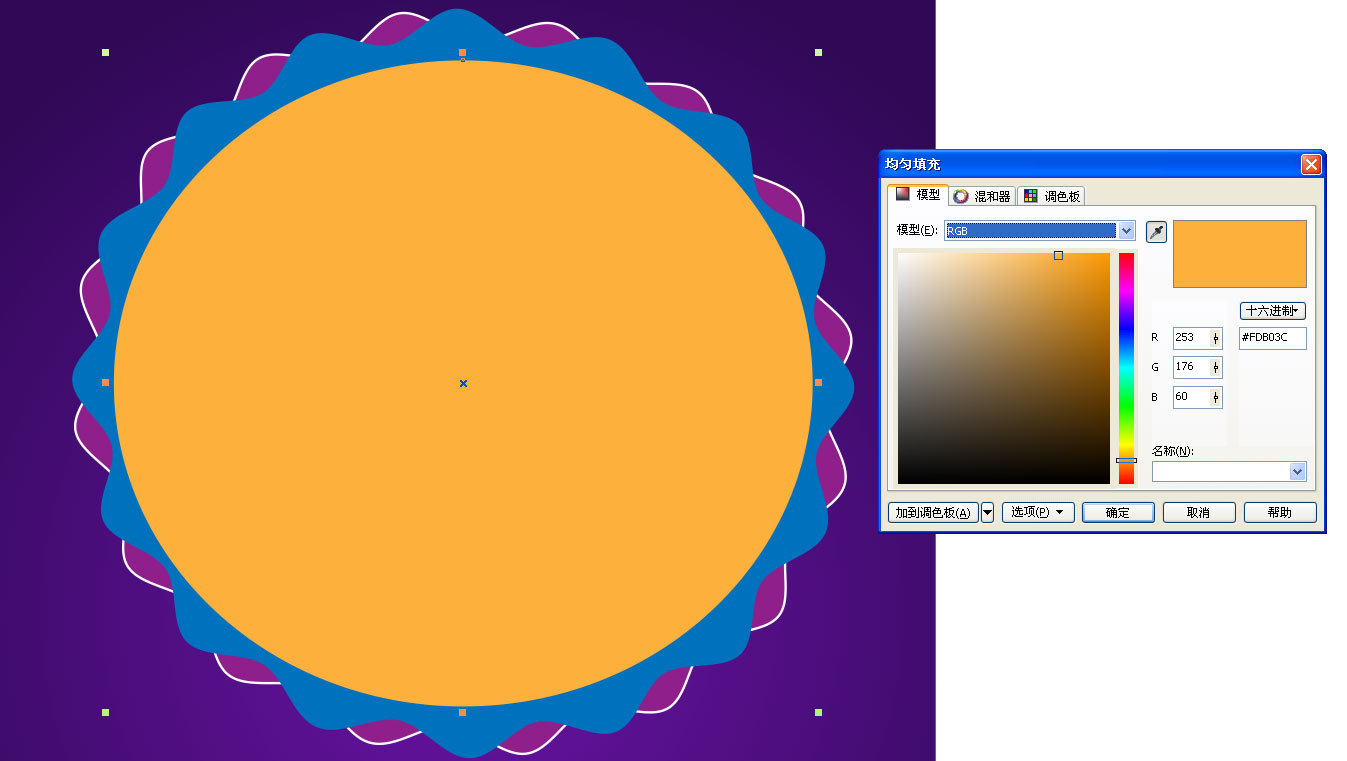3、把變形好的形狀填充顏色,輪廓也填充白色,如圖