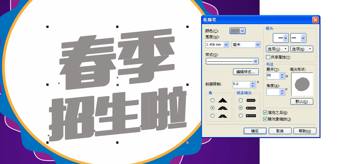 6、用文字工具打上“新季招生啦”選個(gè)好看的字體,我這里用的是造字工房力黑,雙擊往上傾斜下,如圖