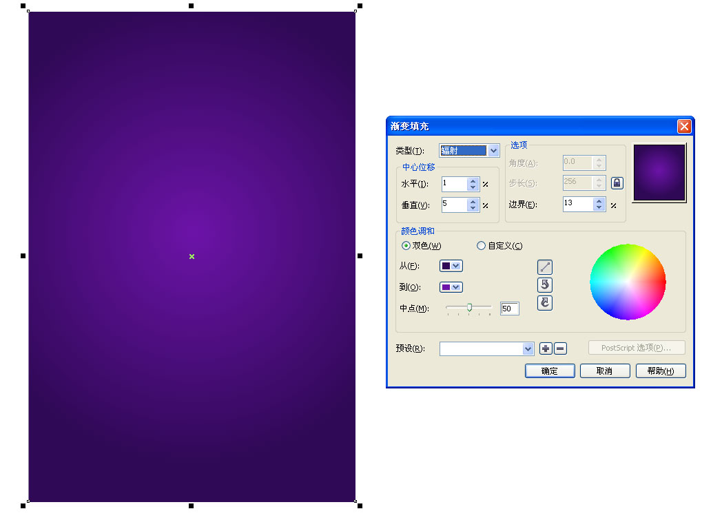 1、打開CDR軟件,我這里用的是X6版本,新建一個(gè)文檔,先用矩形繪制一個(gè)長(zhǎng)200MM高300MM的矩形,填充漸變,如圖
