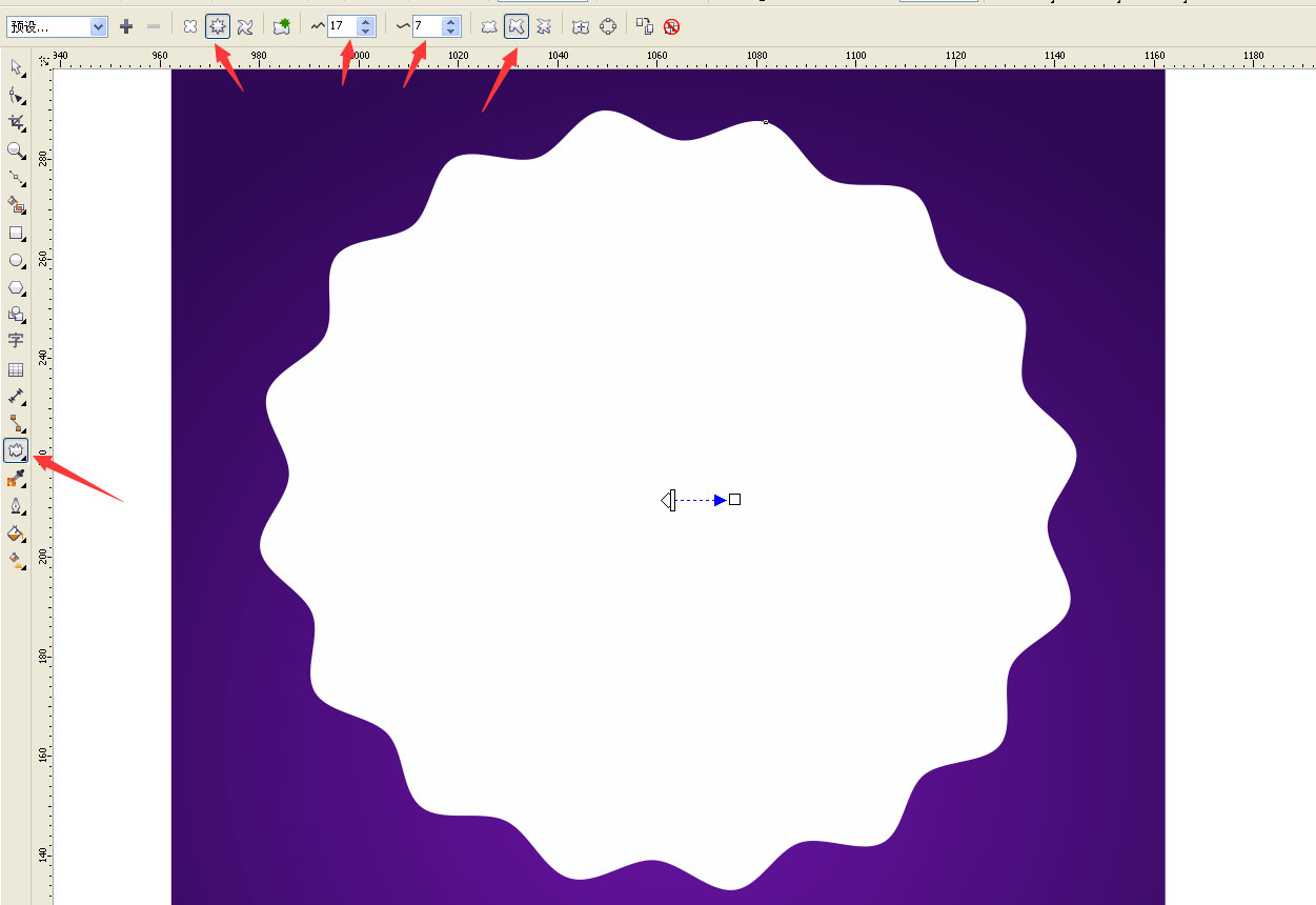 2、橢圓工具繪制一個(gè)橢圓大小差不多就行,選擇左邊工具欄里的變形工具設(shè)置參數(shù),如圖