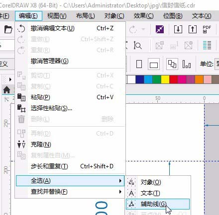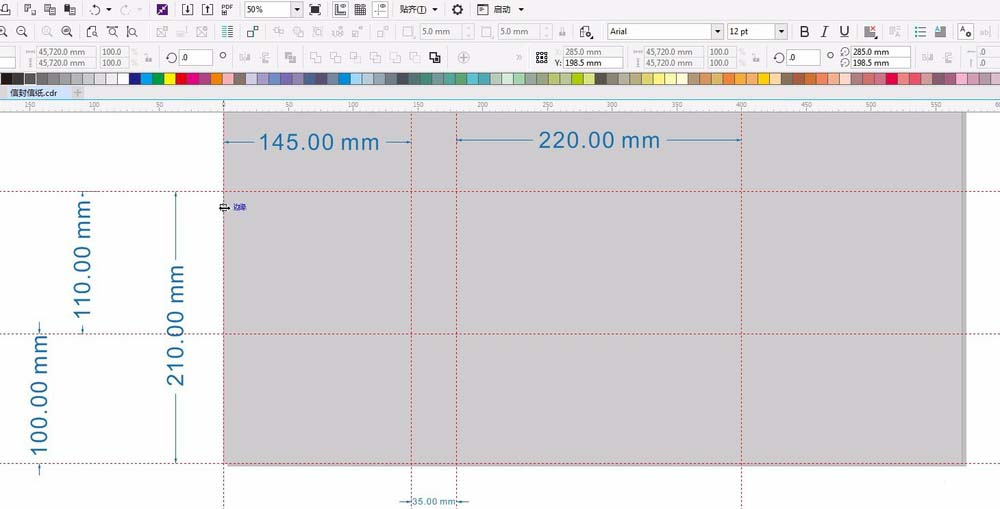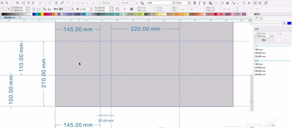 5、信封 .ctrl+j調出選項菜單-->文檔-->輔助線-->水平:0;210;100;添加;添加;垂直:0;145;180;400;添加