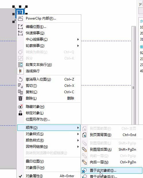 7、素材導入ctrl+i,導入素材。然后點擊右鍵,點擊《順序》-->置于此對象前;將logo復制1份。鼠標左鍵拖動右鍵單擊復制。
