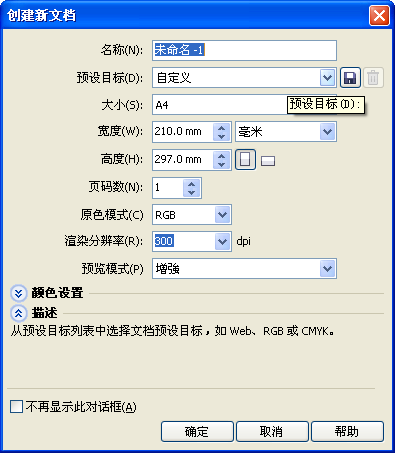 1、開打CDRX6軟件新建一個文檔設置為RGB模式,如圖