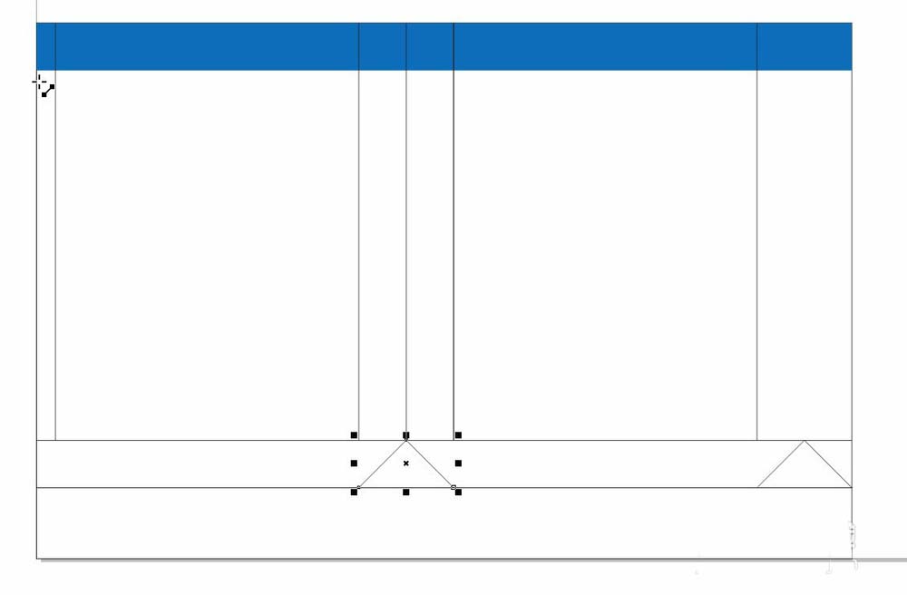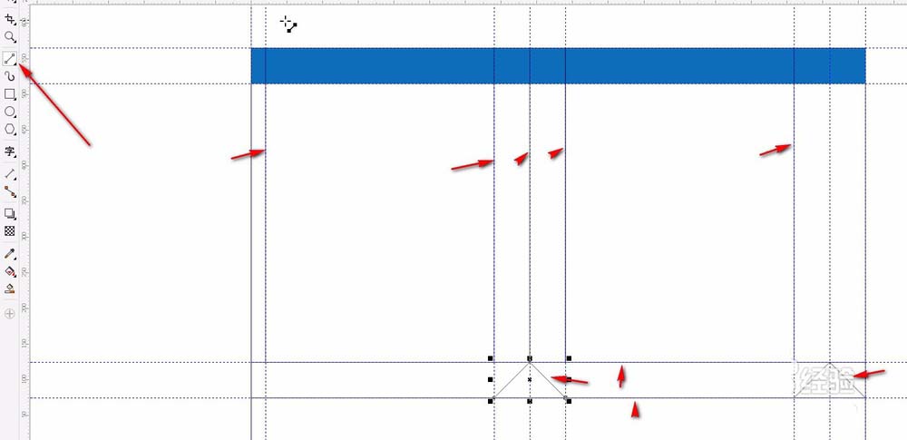 6、用兩點線工具繪制五條豎線和兩個折線。用形狀工具按住shift鍵對折線的兩邊進行延伸,如圖所示。