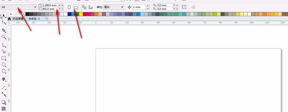1、新建一文檔,參數默認,在打開的文檔里,修改,文檔大小為A0大小橫向為1189mm,高為841mm,方向為橫向。