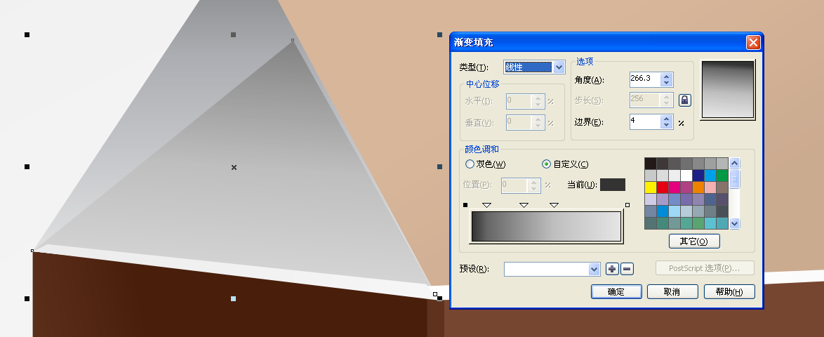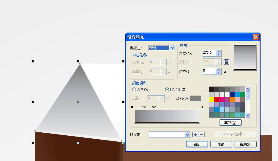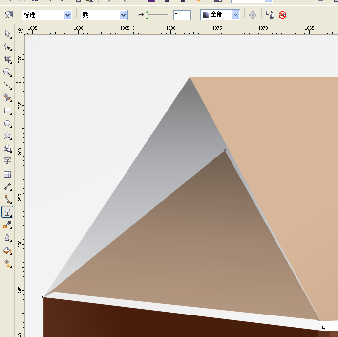 7、用貝賽爾工具繪制一個三角形填充漸變放到之前三角形上面,如圖
