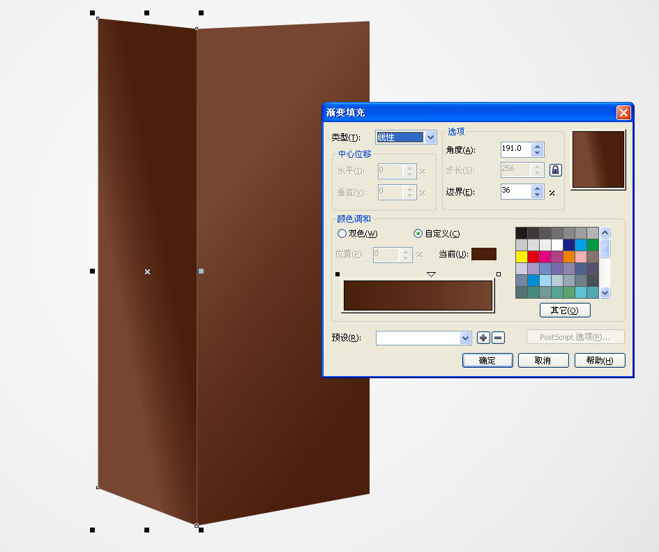 2、同樣用矩形工具繪制一個長30MM高度一樣的矩形填充漸變,傾斜,如圖