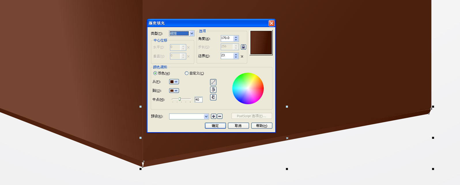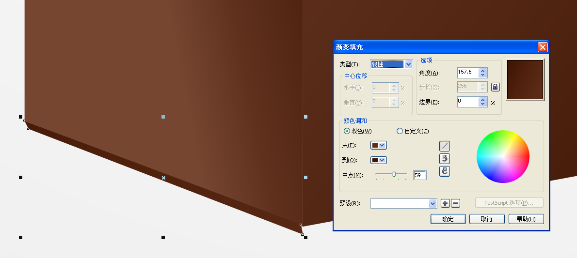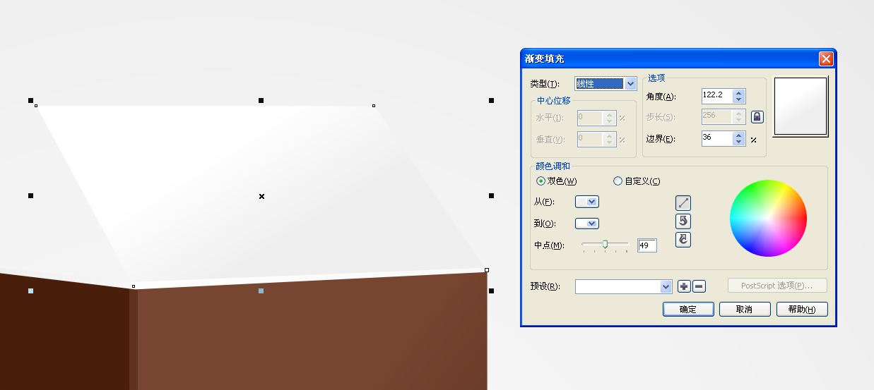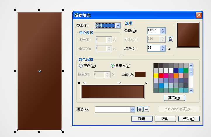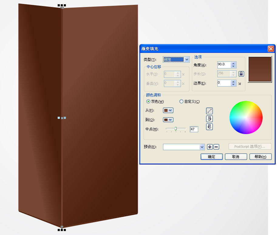1、矩形工具繪制一個矩形,52MMX142MM的矩形,填充漸變,雙擊上下傾斜,如圖