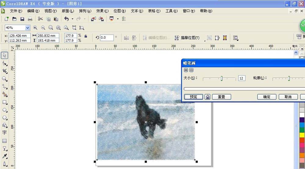 2、也可以選擇位圖,蠟筆畫,對圖片應(yīng)用蠟筆畫的效果,大小的數(shù)值越大,應(yīng)用的效果越突出,點擊預(yù)覽按鈕,就可以先看看效果圖的整體設(shè)計。