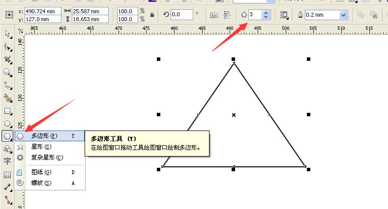 1、打開CDRX6軟件,選擇多邊形工具設置邊數為3繪制一個三角形如圖