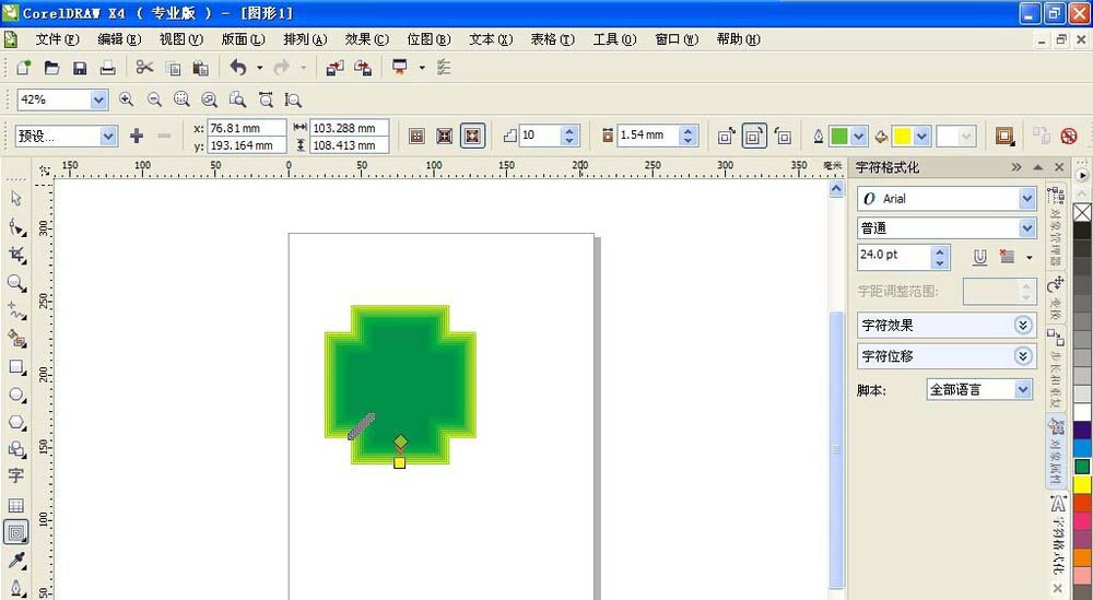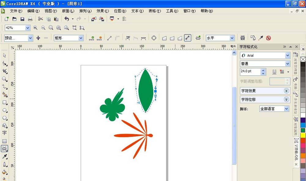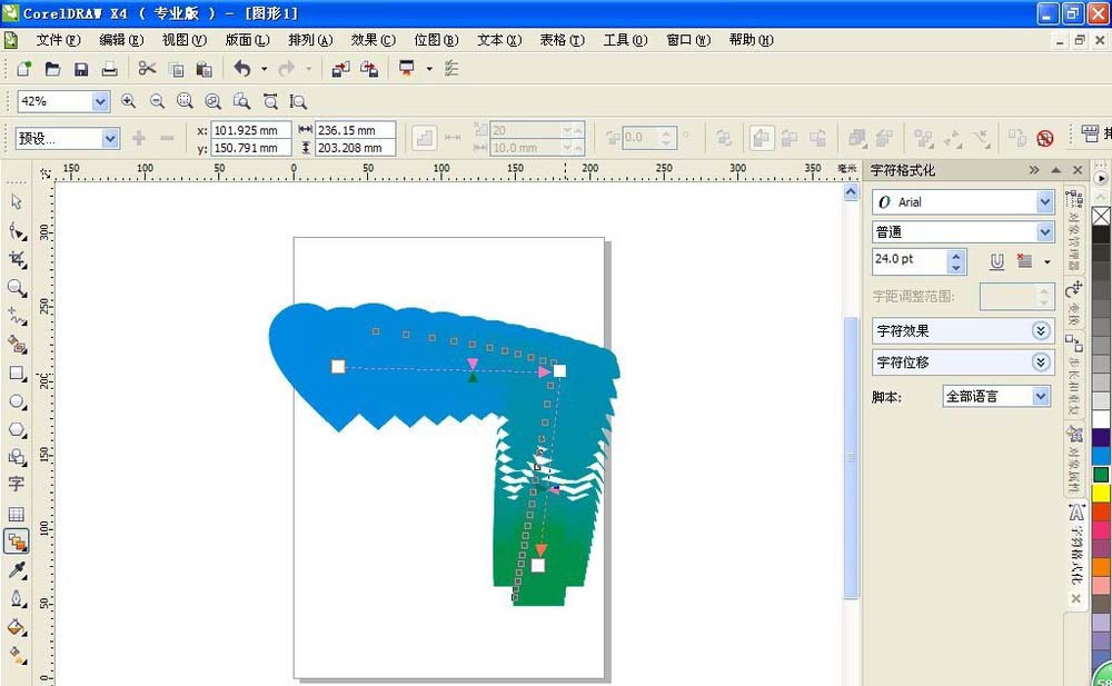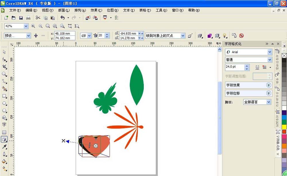 7、選擇封套的交互效果工具,點擊一下形狀,然后選擇非強制性的模式,然后可以自由的進行變形,將復雜形狀變成樹葉。如圖,