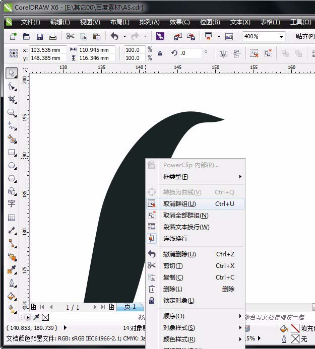 6、之后,我們點擊矢量圖,右鍵--取消群組。