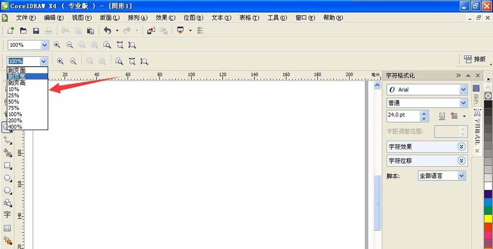 1、新建一個空白文檔,按快捷鍵Crl+N進行新建文檔,然后選擇縮放工具,設置到頁面寬,這時候頁面的整體寬度會變大,如圖