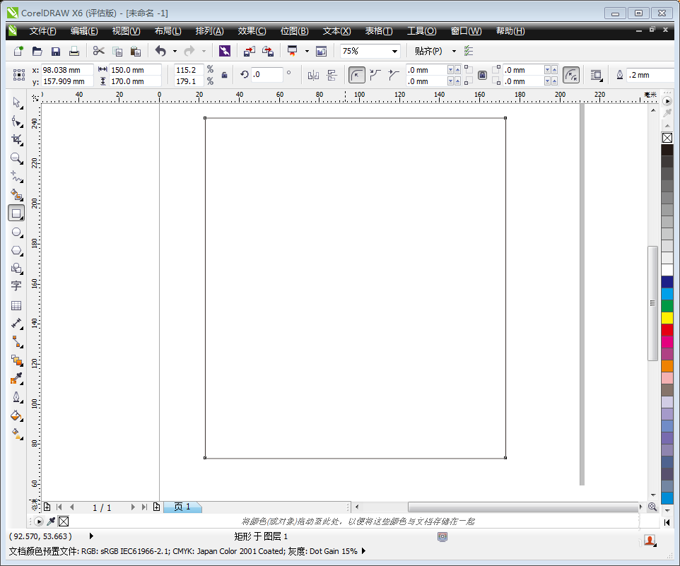 1、打開CRD軟件,新建文檔,在文檔中使用矩形工具直接繪制一個矩形,不需要正方形。