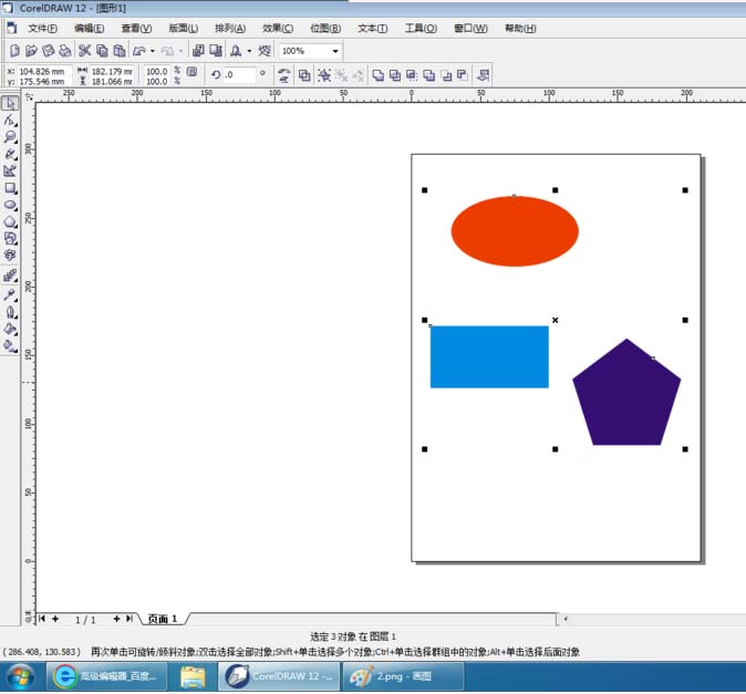2、單擊挑選工具,按住shift鍵的同時,逐一單擊對象可選擇多個對象,再次單擊對象又取消選擇。