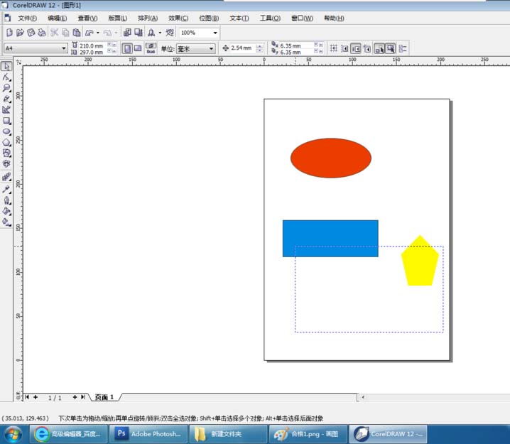 3、框選對象:利用挑選工具沿對角線拖動,凡是被虛框完全框住的對象方能被選擇。