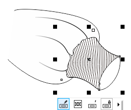 步驟5:選擇應用過封套效果的形狀,點擊菜單欄“對象>PowerClip>置于圖文框內部”,出現一個黑色箭頭,用箭頭點擊羅紋袖口造型,得到效果如圖所示。