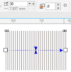 步驟2:在工具箱中選定“調和工具”,在調和的起始對象上按住鼠標左鍵不放,然后拖動到終止對象上,釋放鼠標。在屬性欄中調節羅紋線的疏密,值越大越密集,如圖。