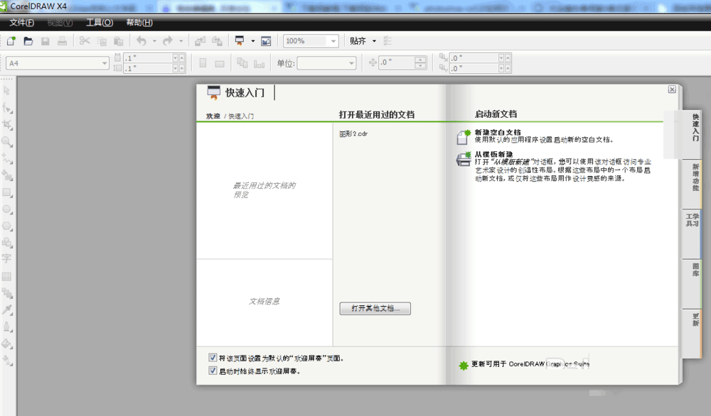 1、打開CorelDraw軟件,關閉快速入門,點選文件----新建,出一來個畫板,選擇橫向即可!
