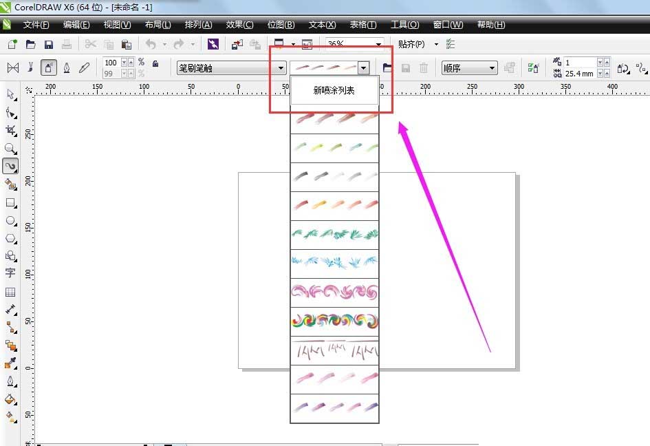 4、選擇完藝術(shù)筆之后,在上方菜單欄選擇“噴繪”按鈕。