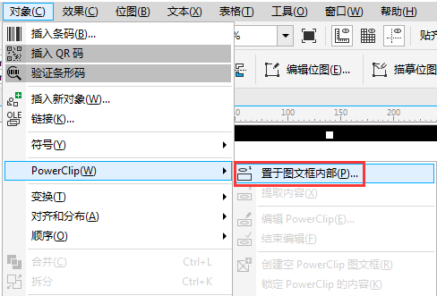 ② 或者選中位圖后,執行菜單欄中“對象>PowerClip>置于圖文框內部”命令。