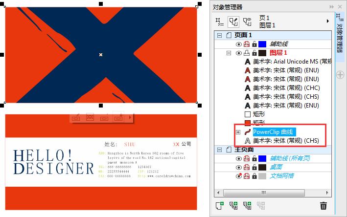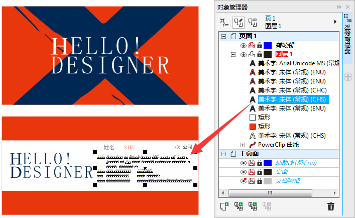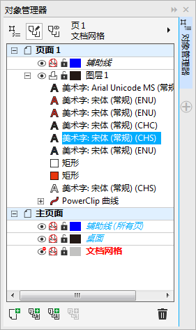 4. 可以從能顯示頁面、圖層或文檔中選擇對象,同時在對象管理器中也會選中該對象;或者當(dāng)對象被壓落或遮擋,也可以利用對象管理器選擇頁面中的對象,如圖所示。