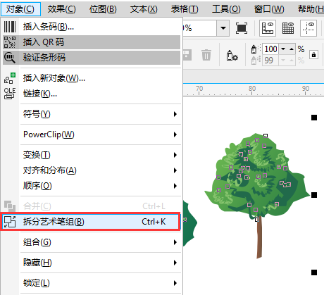 2. 選擇對(duì)象,執(zhí)行“對(duì)象>拆分藝術(shù)筆組”命令,將物件打散。