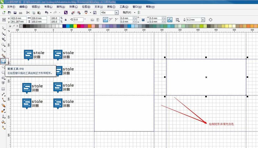 3、用上節(jié)課所學的方法,繪制矩形并填充顏色。