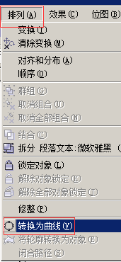 2、在菜單欄找到排列下的子菜單轉換為曲線,排列-轉換為曲線。