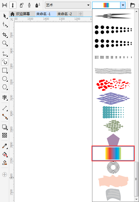 2. 在選中圓形的狀態下,使用工具箱中“藝術筆工具”為其添加藝術效果。在其屬性欄中單擊“筆刷”