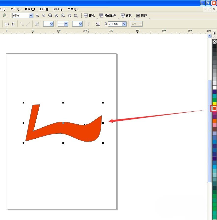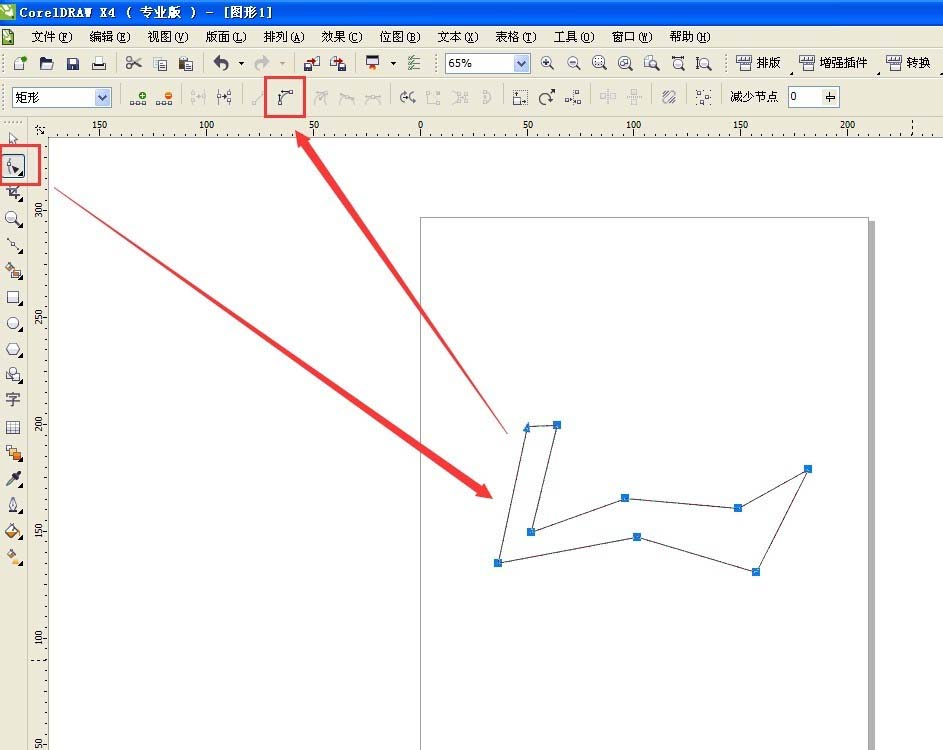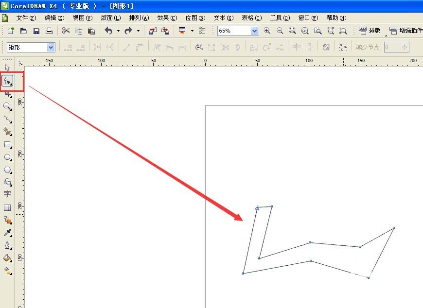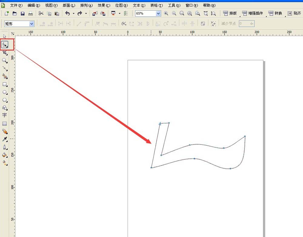 3、在工具箱選擇形狀工具,用形狀工具框選這個輪廓,然后在屬性欄點擊“轉換直線為曲線”。