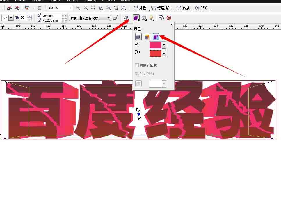 2、文字輸入完成后,選擇工具欄中的立體化工具,對文字進行立體化(立體化的幅度不要太大);