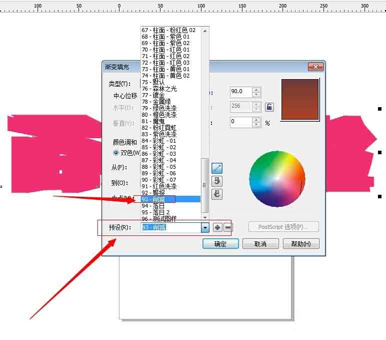 3、立體化后,選擇工具欄中的漸變填充工具,在漸變填充對話框中選擇預設——消弱,然后點擊確定;