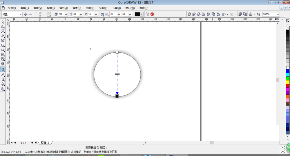 第五步:選中圓,然后鼠標點擊左鍵不放拖動,即可畫出陰影來。