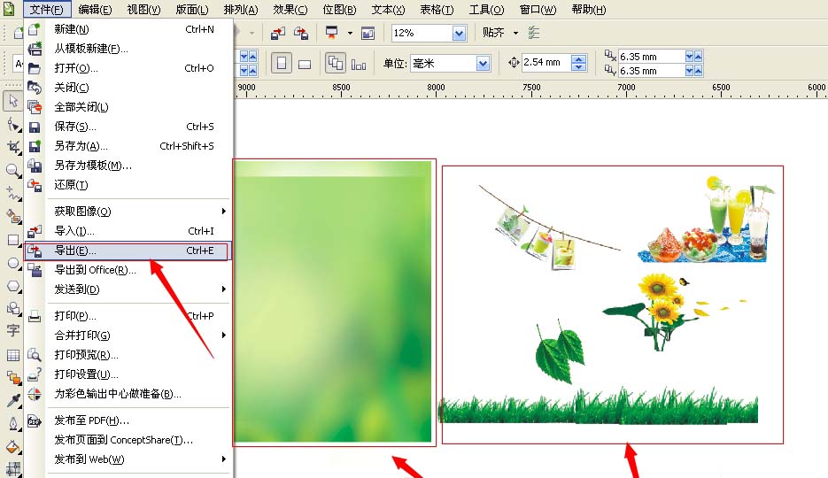 2、執行:文件——導入,將背景圖片以及促銷海報所需的圖形都導入CDR中(背景文件可以自己在PS中制作,也可以在互聯網上下載);