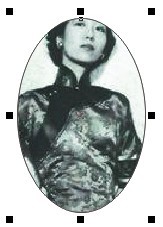 5、可以在(編輯-屬性)中查看該圖的屬性。現(xiàn)在來處理一下這個(gè)位圖,先繪制一個(gè)橢圓。點(diǎn)擊(挑選工具)選中圖像,再選擇(效果—圖框精確裁剪—放置在容器中),然后點(diǎn)擊橢圓。得到如下圖(左)。然后點(diǎn)擊右鍵,選擇(編輯內(nèi)容),將頭像放置在合適的位置后(完成編輯)。得到如下圖(右):