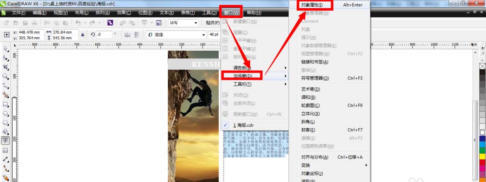 6、點擊菜單欄里的“窗口”——“泊塢窗”——“對象屬性”