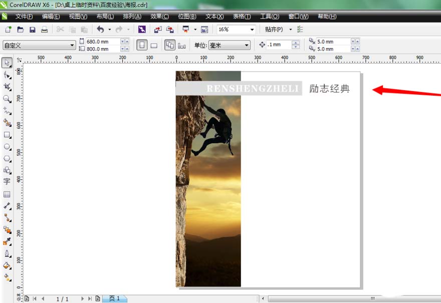 12、最后再使用文本工具,在段落文字內容上方的空白位置上輸入文章標題,修改下字體、大小即可完成了整個海報的設計制作了。
