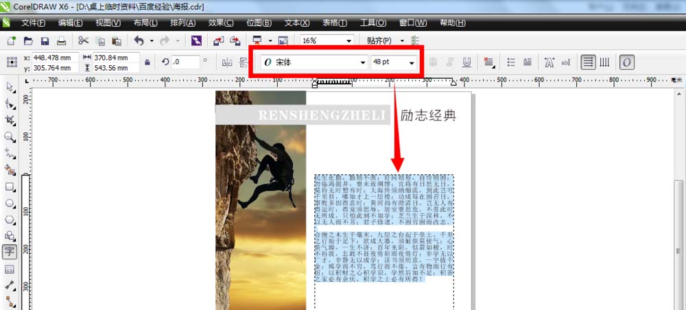 今天,我們接著前面裁剪圖片制作海報貼畫繼續講解一下怎樣在cdr軟件里面排版段落文字的,效果如下圖所示。一些已經學過的知識點我們不再重復哈~有需要的可以翻看前面的經驗~
