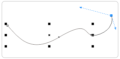 3. 使用“貝塞爾工具”在繪制的過程中(指不釋放鼠標(biāo)狀態(tài)下),在無輸入法狀態(tài)下按C鍵拖動(dòng),就可以讓當(dāng)前的節(jié)點(diǎn)手柄曲折(相當(dāng)于形狀工具下的尖突節(jié)點(diǎn),或者PS鋼筆工具下的Alt鍵類似)。