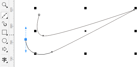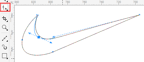 6. 當然,這樣繪制出來的曲線不是一下就能達到完美要求,更多情況下,還需要借助“形狀工具”來調整,您可以選擇節點和手柄拖動微調獲取到更加精準的圖形,如圖所示。